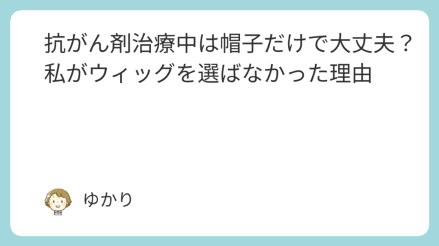 抗がん剤治療中は帽子だけで大丈夫?私がウィッグを選ばなかった理由